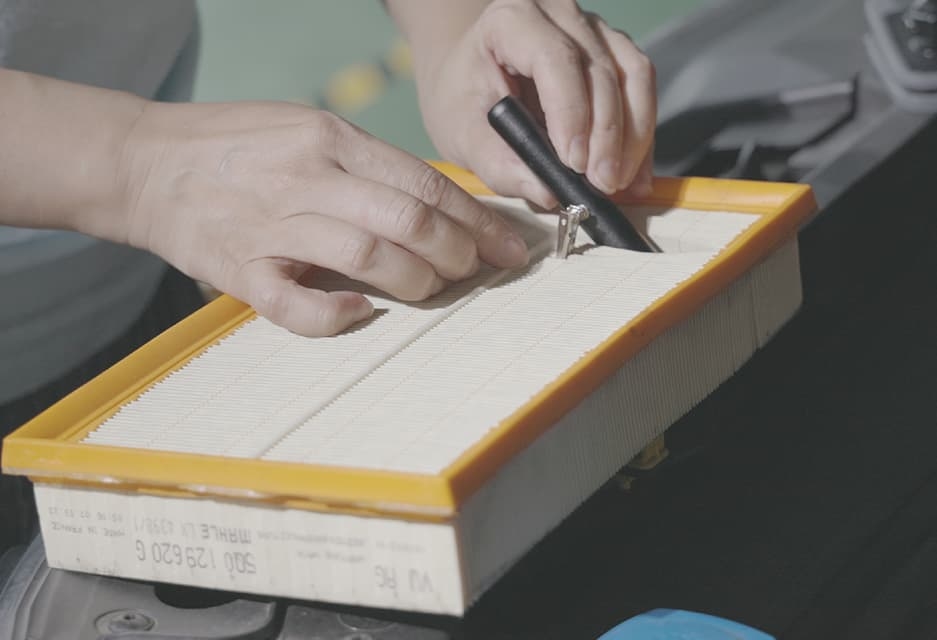 將空氣濾清盒蓋子打開,取出濾心。